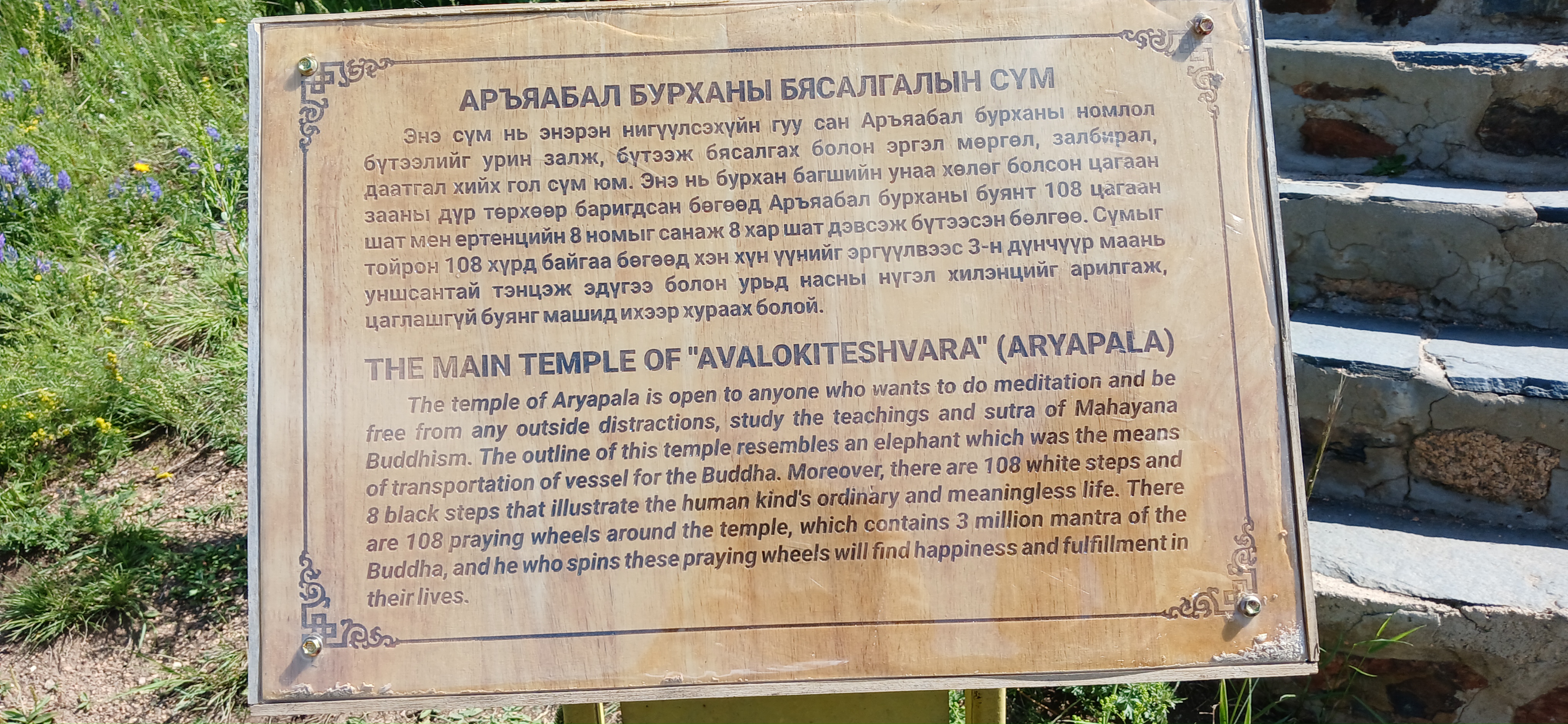 야리야발 사원의 안내판이다. 야리야발 사원은 테를지의 라마 불교사원으로